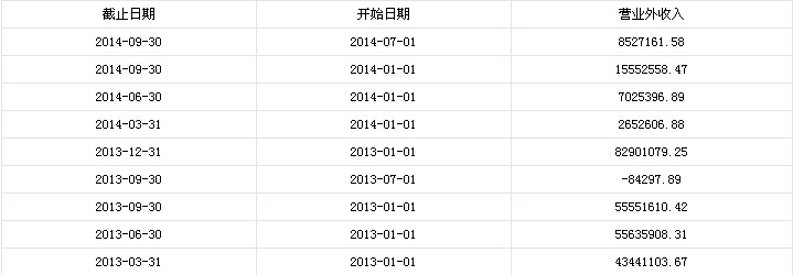 但值得注意的是,盡管營(yíng)業(yè)收入和營(yíng)業(yè)利潤(rùn)的增幅頗大,總的利潤(rùn)額卻是呈下跌的狀態(tài),從下圖中可看出,光迅科技從2013年9月開始直到2014年9月,營(yíng)業(yè)外收入的波動(dòng)較大,2014年間也無(wú)大起色,2014年的前三季度營(yíng)業(yè)外收入相比同期下降72%,下降幅度較大,營(yíng)業(yè)外收入的減少,總的利潤(rùn)額也隨之下降。