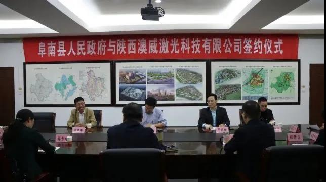 ICC訊 11月6日下午,安徽省阜南縣人民政府與陜西澳威激光科技有限公司舉行簽約儀式。阜南縣委書記、縣長(zhǎng)李云川主持簽約儀式??h委常委、副縣長(zhǎng)梅雪玲與陜西澳威激光科技有限公司總裁石元簽約。