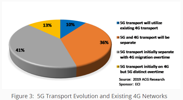 ACG發(fā)現(xiàn)有關(guān)4G和5G傳輸網(wǎng)絡(luò)如何共存有不同觀(guān)點(diǎn) - 無(wú)論是最初還是長(zhǎng)期。雖然大家都意識(shí)到5G傳輸解決方案需要更高容量和更快端口速度來(lái)支持5G網(wǎng)絡(luò),但爭(zhēng)論的焦點(diǎn)是如何實(shí)現(xiàn)這一目標(biāo)。在ACG的研究中,41%受訪(fǎng)者認(rèn)為,5G傳輸網(wǎng)絡(luò)最初將與現(xiàn)有4G傳輸解決方案分開(kāi)部署,而4G網(wǎng)絡(luò)則隨著時(shí)間的推移遷移/融合5G。然而,有36%的參與者認(rèn)為5G和4G傳輸網(wǎng)絡(luò)將保持完全獨(dú)立和獨(dú)特。13%的參與者認(rèn)為5G最初將部署在4G傳輸網(wǎng)絡(luò)上,但5G將隨著時(shí)間的推移而分離并變得截然不同,而10%的人認(rèn)為5G最初將部署在4G傳輸基礎(chǔ)設(shè)施上并在整個(gè)部署生命周期內(nèi)保持融合。