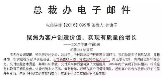 近日,華為輪值CEO徐直軍發(fā)布新年獻(xiàn)詞宣布,預(yù)計(jì)華為2016年銷售收入將達(dá)到5200億元,同比增長(zhǎng)高達(dá)32%。
