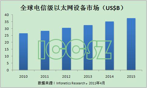 以太網(wǎng)設(shè)備方面的投資繼續(xù)快于其他的電信設(shè)備,預(yù)計(jì)到2015年,全球電信級(jí)