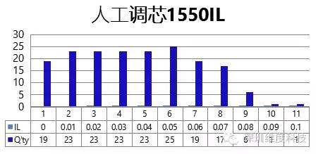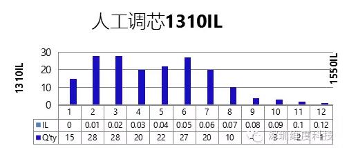 使用人工調(diào)芯與自動(dòng)機(jī)臺(tái),各選10條跳線(xiàn)進(jìn)行調(diào)K后互配測(cè)試IL.1310與1550各有180組數(shù)據(jù)。