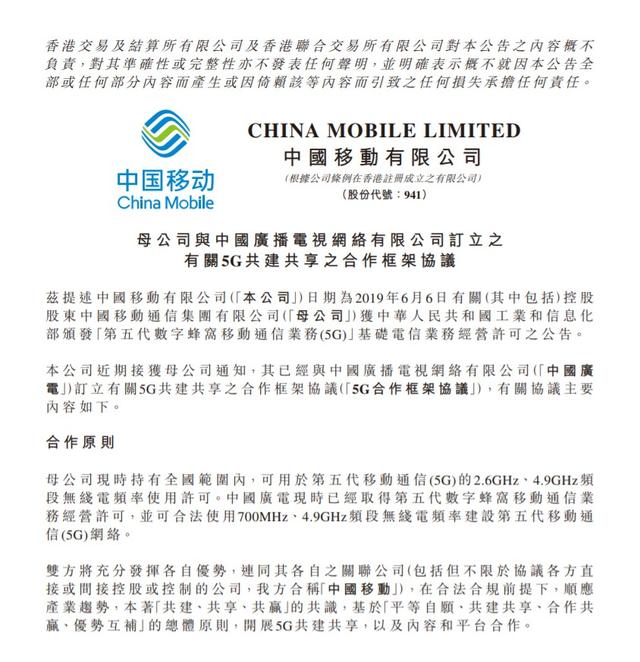 近日,中國(guó)移動(dòng)接到母公司通知,已與中國(guó)廣播電視網(wǎng)絡(luò)有限公司(下稱“中國(guó)廣電”)簽署5G共建共享合作框架協(xié)議,開(kāi)展5G共建共享以及內(nèi)容和平臺(tái)合作。