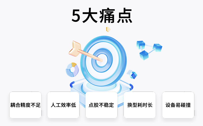隨著數(shù)據(jù)中心與通信網(wǎng)絡(luò)向400G、800G、1.6T乃至3.2T高速光模塊演進,傳統(tǒng)人工或半自動耦合方式已難以滿足高效率、高精度、高良率的量產(chǎn)需求。在生產(chǎn)過程中常面臨以下痛點:耦合精度不足、人工效率低、點膠不穩(wěn)定、換型耗時長、設(shè)備易碰撞。