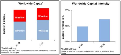 ICC訊(編譯:Nina)近日,Dell'Oro更新了2020年電信資本支出報告。該報告分析了超過50加運營商(占全球電信資本支出和收入的80%)的無線和有線資本支出與收入之間的關(guān)系,表示設(shè)備項目與電信資本密集度之間的關(guān)系依然顯著。