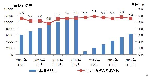圖1 2016-2017年6月電信業(yè)務(wù)收入發(fā)展情況