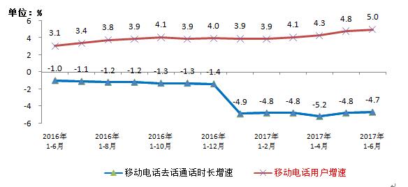 圖6 2016-2017年6月移動(dòng)電話用戶和通話量增幅比較