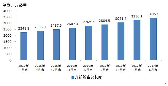 圖11 2015-2017年6月光纜線路總長(zhǎng)度發(fā)展情況