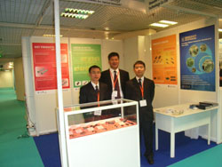 恒寶通展臺(tái)前工作人員合影 彭總在展館外