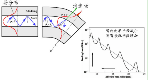 圖1彎曲導(dǎo)致的光纖損耗原理圖