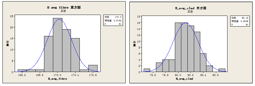 圖3 長(zhǎng)飛公司BI1015-B系列光纖涂覆層和包層統(tǒng)計(jì)數(shù)據(jù)
