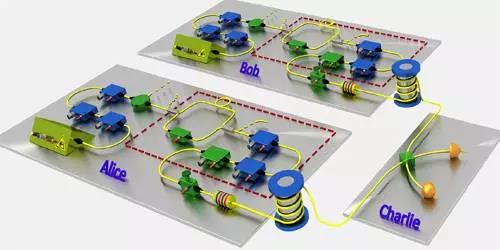 讀者朋友可能要問(wèn)了,Charlie作為探測(cè)器,一旦被攻擊了,敵人不還是能知道發(fā)送的信息嗎?這就要說(shuō)到這個(gè)協(xié)議的巧妙之處了。Alice或Bob除了擁有一套用來(lái)發(fā)送光子的系統(tǒng),還有一套虛擬系統(tǒng),這兩個(gè)系統(tǒng)之間存在糾纏。Alice將光子發(fā)送出去的時(shí)候,并不知道自己發(fā)出去的是什么態(tài),只是把虛擬系統(tǒng)進(jìn)行保存,直到Charlie宣布了Bell測(cè)量結(jié)果,Alice再去測(cè)量虛擬系統(tǒng),從而知曉剛才自己發(fā)送的光子態(tài)。自始至終,Charlie啥信息也得不到。