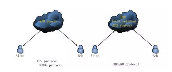 我們知道,BB84協(xié)議的提出者Bennett和Brassard以及康奈爾大學(xué)的Mermin在原本BB84協(xié)議思想和測(cè)量方式的基礎(chǔ)上,利用糾纏資源,提出了新的BBM92協(xié)議,它與BB84協(xié)議等價(jià)。傳統(tǒng)的BBM92協(xié)議是利用一個(gè)糾纏源向分隔兩地的接收端(研究人員稱兩個(gè)接收端分別為Alice和Bob)發(fā)送一對(duì)糾纏光子對(duì),這樣,兩地共享一對(duì)糾纏光子,然后進(jìn)行測(cè)量。但是恐怖的是,Alice和Bob這兩個(gè)探測(cè)器如果不安全了、被敵人控制了怎么辦?那時(shí)候研究人員只能看到敵人想讓我們看到的信息,或者干脆信息泄露(與針對(duì)光源漏洞的攻擊實(shí)現(xiàn)難度較大不同,有些針對(duì)探測(cè)器漏洞的攻擊方案已經(jīng)成功進(jìn)行了實(shí)驗(yàn)演示)。
