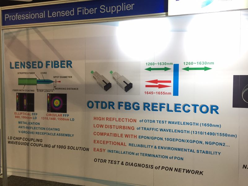 盛佳主要展示公司的兩大產(chǎn)品線:光纖光柵FBG和光纖透鏡(Lensed Fiber)。盛佳表示,在一根光纖上把FBG和光纖透鏡一起來做,把兩個產(chǎn)品結(jié)合在一起,這在國內(nèi)屬于首家。