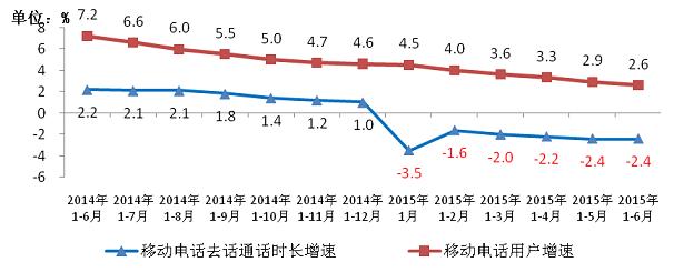 移動電話通話量持續(xù)下滑,國內(nèi)漫游通話量增速呈回落態(tài)勢。受移動電話用戶的增長放緩和互聯(lián)網(wǎng)應用的持續(xù)沖擊,1-6月,全國移動電話去話通話時長完成14242.2億分鐘,同比下降2.4%,降幅與1-5月持平。國內(nèi)非漫游、國際和港澳臺漫游通話時長降幅擴大,同比下降3.2%、5.8%、7.3%,分別比1-5月擴大0.1、1.0和0.4個百分點;國內(nèi)漫游去話通話時長則繼續(xù)增長,同比增長3.4%,但增幅較1-5月下降0.3個百分點。移動電話通話量和移動電話用戶的增長趨勢繼續(xù)反轉(zhuǎn),雖然移動電話用戶數(shù)仍保持微增長,但移動電話通話量已連續(xù)六個月同比負增長。