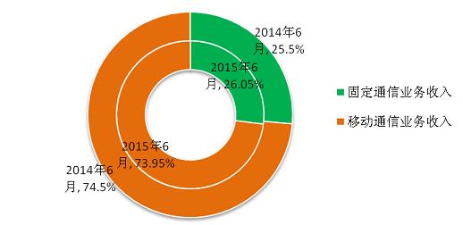 圖8 2015年6月電信業(yè)務收入結構占比情況(固定和移動)