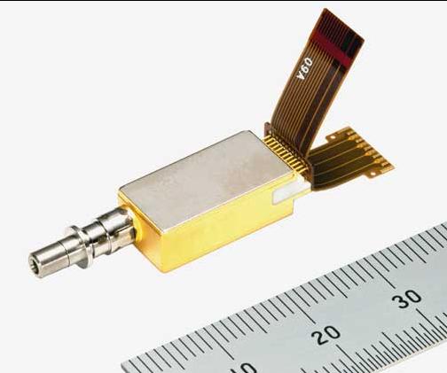 新產(chǎn)品的外形尺寸僅8.8mm×26.5mm×5.6mm,與使用4個(gè)該公司以往產(chǎn)品“FU-412REA”時(shí)相比,封裝面積減小到了約四分之一。而且,新產(chǎn)品通過(guò)改進(jìn)EML元件,使工作溫度提高了約15℃;還將最大功耗降至2W,使冷卻至工作溫度所必需的功耗減少到約一半。憑借這些措施,該模塊還可搭載于CFP2等小型光收發(fā)器上,而且,新產(chǎn)品采用柔性印刷電路板,便于安裝,有助于提高小型光收發(fā)器的生產(chǎn)效率。