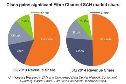 ICCSZ訊 2015年1月7日,市場調(diào)研公司Infonetics發(fā)布其最新的三季度關(guān)于存儲區(qū)域網(wǎng)絡(luò)(SAN)和融合數(shù)據(jù)中心網(wǎng)絡(luò)設(shè)備市場報告。