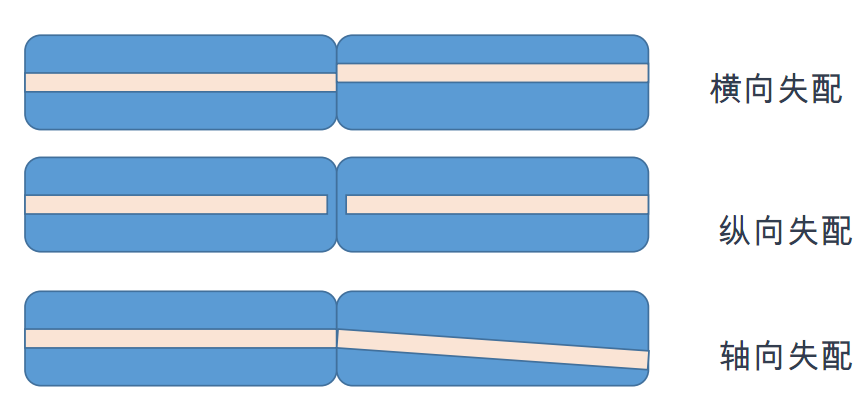 光纖連接器活動在鏈路中的連接損耗主要有幾個方面引起的:傳光部分(纖芯 core)橫向失配、縱向失配、軸向失配等。