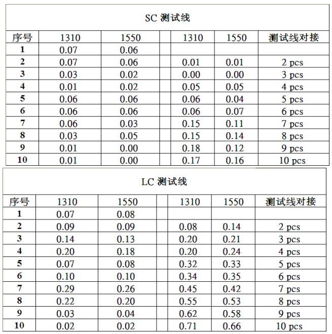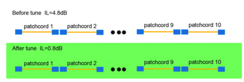 每個光纖連接器經(jīng)過調(diào)芯后在串聯(lián)的接入損耗1L=0.8dB