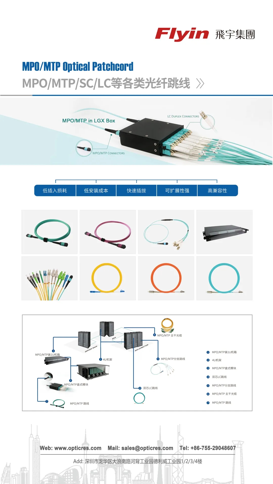 ● MPO/MTP、LC、SC等各類光纖跳線