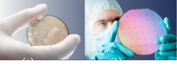 圖4 (a)InP晶圓 (b)硅基晶圓