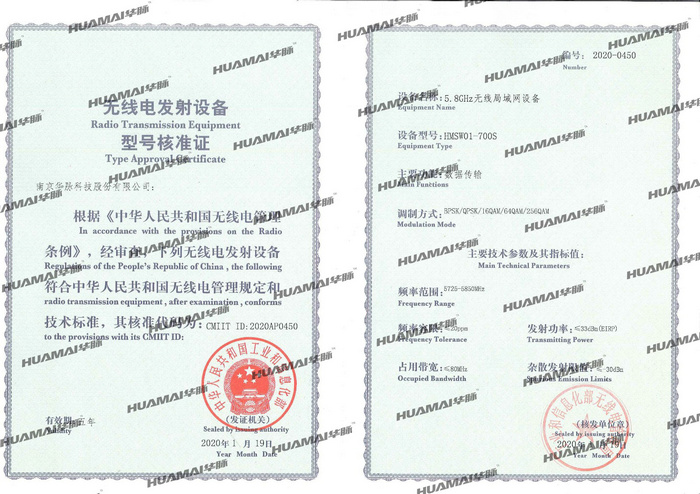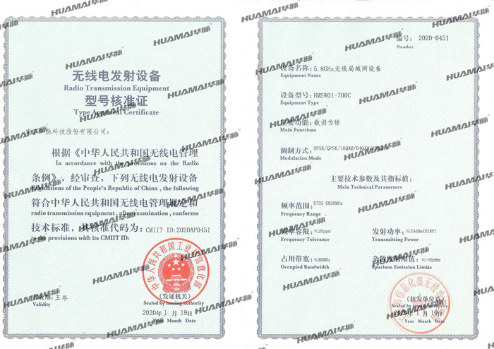 根據(jù)《中華人民共和國無線電管理條例》,公司向工業(yè)和信息化部申請了無線電發(fā)射設(shè)備型號核準,經(jīng)相關(guān)部門嚴格檢測和審查,符合中華人民共和國無線電管理規(guī)定和技術(shù)標準,工業(yè)和信息化部頒發(fā)了無線電發(fā)射設(shè)備型號核準證書和核準代碼。這一產(chǎn)品將為公司注入新的活力,助力華脈科技未來大展宏圖。