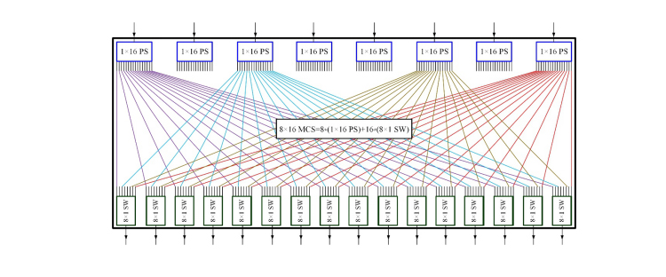 圖8. 8×16端口MCS光開關結構(PS:光分路器,SW:光開關)