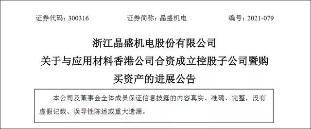 應(yīng)用材料公司成立于1967年,總部位于美國,是全球最大的半導(dǎo)體和顯示設(shè)備制造商,產(chǎn)品包括用于制造半導(dǎo)體和其他高科技部件的機(jī)器。今年7月30日,晶盛機(jī)電發(fā)布公告稱,該公司擬與應(yīng)用材料公司開展合作,通過向晶盛機(jī)電全資子公司浙江科盛智能裝備有限公司增資的方式成立合資公司。