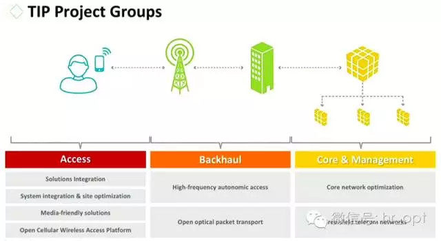 再看看TIP的項(xiàng)目組成,包括接入、回傳和核心&管理三大項(xiàng)目組,這幾乎涵蓋了整個(gè)通信網(wǎng)絡(luò)領(lǐng)域。
