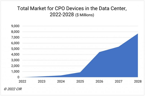 ICC訊(編譯:Nina)行業(yè)分析公司CIR發(fā)布了最新的共封裝光學(Co-Packaged Optics,CPO)市場報告。該公司表示,到2027年,共封裝光學的市場收入將達到54億美元。這份題為《2022-2030年共封裝光學市場》的報告重點關(guān)注數(shù)據(jù)中心內(nèi)對CPO的需求,并表示CPO部署將在很大程度上受到交換演進的推動。交換演進將在2025年達到102.4Tbps的速度。一旦交換達到這個水平,可插拔收發(fā)器將逐漸消失。與使用可插拔光學器件相比,CPO承諾將功耗降低30%,每比特成本降低40%。