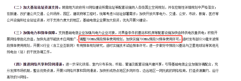 在工信部最新推動加快5G發(fā)展的通知中,除了在政策上的支持外,還提到了700MHz的事。