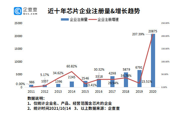 ICC訊 企查查數(shù)據(jù)顯示,我國(guó)現(xiàn)存芯片相關(guān)企業(yè) 8.64 萬(wàn)家。2020 年我國(guó)新增芯片相關(guān)企業(yè) 2.09 萬(wàn)家,同比增長(zhǎng) 207.39%。