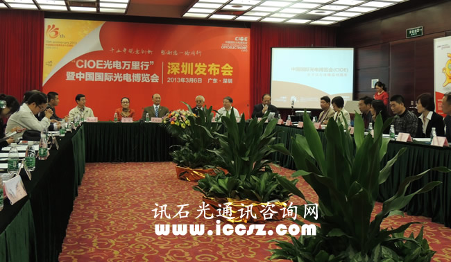 【訊石光通訊咨詢網(wǎng)】今日,“中國國際光電博覽會(huì)(CIOE)光電萬里行” (以下簡稱CIOE)深圳新聞發(fā)布會(huì)在深圳會(huì)展中心玫瑰廳拉開帷幕?,F(xiàn)場有中國光博會(huì)相關(guān)領(lǐng)導(dǎo),深圳市經(jīng)貿(mào)和信息化委員會(huì)、深圳半導(dǎo)體照明產(chǎn)業(yè)發(fā)展促進(jìn)會(huì)以及深圳光學(xué)學(xué)會(huì)相關(guān)部分領(lǐng)導(dǎo),同時(shí)還有企業(yè)單位代表和多家大眾和專業(yè)媒體記者參加本次發(fā)布會(huì),訊石作為專業(yè)媒體也應(yīng)邀出席?,F(xiàn)場氣氛融洽,討論熱烈?,F(xiàn)場還揭曉了CIOE吉祥物即光電超人形象。