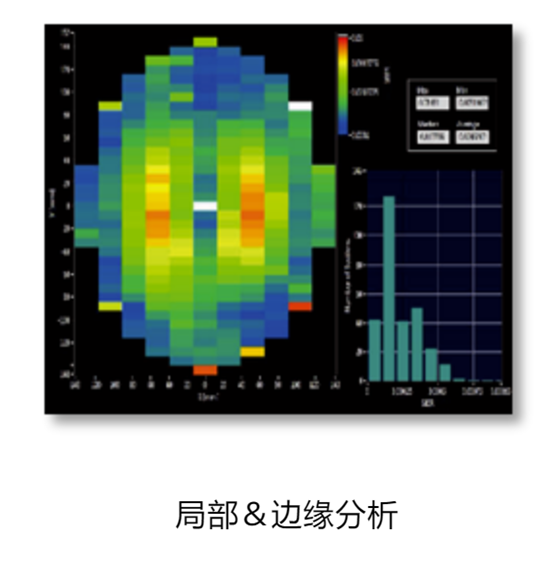除了厚度測量和線輪廓分析外,還可以統(tǒng)計(jì)分析符合SEMI標(biāo)準(zhǔn)的平整度參數(shù),并可以以任意形式顯示和輸出數(shù)據(jù)。另外,可以解析指定的2片晶圓的厚度差異,便于監(jiān)測拋光過程。