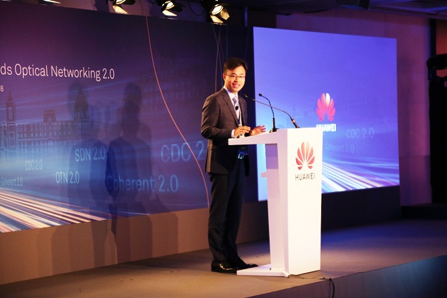 華為傳送網(wǎng)產(chǎn)品線副總裁段愛國在華為第五屆光網(wǎng)創(chuàng)新大會上發(fā)言