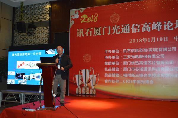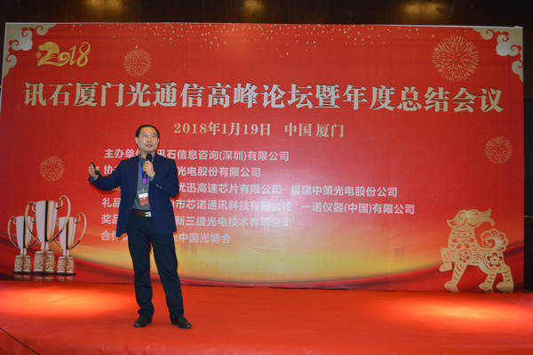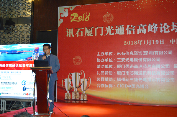 Iccsz訊 白駒過隙,時光荏苒,2017年已經(jīng)結(jié)束,我們迎來嶄新的2018年!正逢新年喜慶,1月19日《2018訊石廈門光通信高峰論壇暨年度總結(jié)會議》在廈門成功舉辦,145家企業(yè)超過280人齊聚廈門,歡度訊石2017尾牙,展望全球2018!本次會議由訊石信息咨詢(深圳)有限公司主辦、三安光電股份有限公司協(xié)辦,廈門優(yōu)迅高速芯片有限公司和福建中策光電股份公司支持,論壇圍繞光通信模塊、器件、芯片和材料等議題展開,多位光通信行業(yè)大咖先后向觀眾講述市場動態(tài)和技術(shù)發(fā)展。還要感謝廈門市芯諾通訊有限公司、一諾儀器(中國)有限公司、福州新三捷光電技術(shù)有限公司和CIOE中國光博會對本次論壇提供的幫助,大家一起將論壇氛圍推向高峰。
