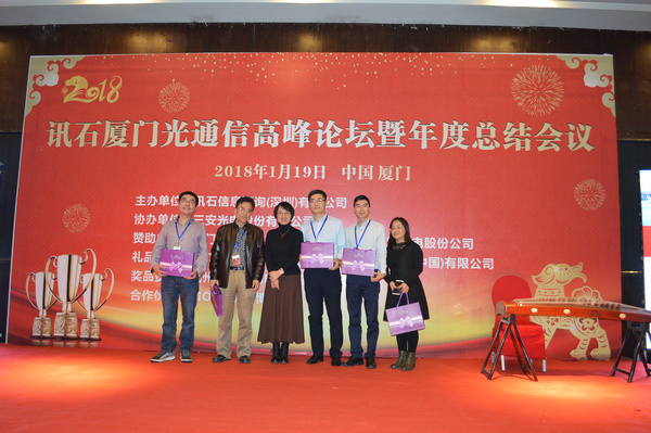 花開遍四處,酒香滿城飄!訊石廈門光通訊高峰論壇暨年度總結(jié)會議圓滿結(jié)束,在熱鬧的晚宴上,大家再度舉杯共慶!訊石再次特別感謝三安光電股份有限公司、廈門優(yōu)迅高速芯片有限公司、福建中策光電股份公司對本次會議的鼎力支持,也對廈門市芯諾通訊有限公司、一諾儀器(中國)有限公司、福州新三捷光電技術(shù)有限公司和CIOE中國光博會對本次論壇會議提供的幫助表示感謝!訊石祝愿他們2018再創(chuàng)新高!