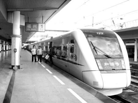 動車組停在福州火車站,其車頭略顯平滑,與我們以前常見的“子彈頭”不太一樣