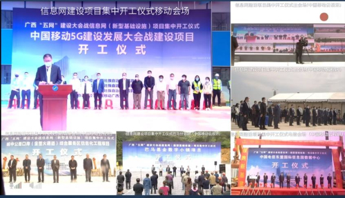ICC訊 4月12日,廣西“五網(wǎng)”建設(shè)大會戰(zhàn)信息網(wǎng)(新型基礎(chǔ)設(shè)施)項(xiàng)目集中開工儀式在南寧五象云谷云計(jì)算數(shù)據(jù)中心舉行。廣西移動在開工儀式上表示,將在2020年底累計(jì)開通5G基站達(dá)到1.1萬個(gè),全力以赴建設(shè)覆蓋全區(qū)14個(gè)城市的5G精品網(wǎng)絡(luò),通過5G“新基建”助力“數(shù)字廣西”戰(zhàn)略。