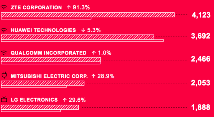 中興再奪PCT國際專利申請榜首:連續(xù)7年位居前三