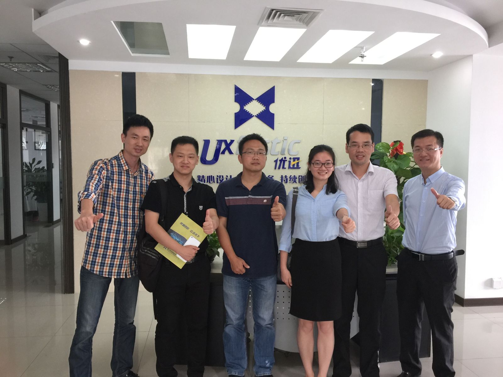 優(yōu)迅技術(shù)總監(jiān)林少衡(右二)等代表與訊石記者