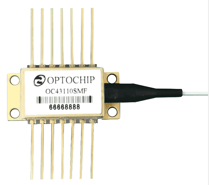 由針對傳感器光源用的窄波段和全C可調(diào)激光器芯片封裝而成的14針蝶形器件,芯片采用量子阱+光柵結(jié)構(gòu),內(nèi)置半導(dǎo)體制冷器,標準封裝工藝實現(xiàn)蝶形(Butterfly)尾纖式封裝。 提供各種波長DFB激光器來料代工或定制化蝶形封裝。