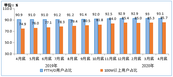 圖3 2019年-2020年4月末光纖接入(FTTH/O)和