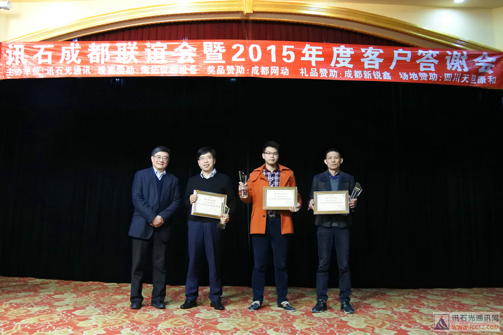 會議最后還頒發(fā)了訊石2015年度突出貢獻(xiàn)獎(jiǎng),分別是長飛光纖光纜股份有限公司、通鼎集團(tuán)有限公司、飛秒光電科技(西安)有限公司、昂納科技(集團(tuán))有限公司、索爾思光電有限公司、Finisar 、深圳市晧辰電子科技有限公司、高意科技、四川光恒通信技術(shù)有限公司、吳江市海拓儀器設(shè)備有限公司,對一直以來信任與支持訊石的企業(yè)們致以衷心的感謝,也希望在未來的日子里我們能夠繼續(xù)攜手共進(jìn),再創(chuàng)輝煌。