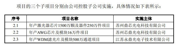 1、項(xiàng)目基本情況 5G 承載網(wǎng)核心光芯片、器件、模塊研發(fā)及產(chǎn)業(yè)化項(xiàng)目分為三個(gè)子項(xiàng)目開展,分別為年產(chǎn)激光器芯片 1500 萬顆及器件 250 萬件項(xiàng)目、年產(chǎn) AWG 芯片及模塊 16 萬件項(xiàng)目以及年產(chǎn) WDM 濾光片及模塊 500 萬通道項(xiàng)目。公司擬通過本項(xiàng)目建設(shè),提升公司在 5G 承載網(wǎng)核心芯片、器件及模塊領(lǐng)域的綜合實(shí)力,完善公司光通信產(chǎn)業(yè)鏈布局,滿足公司未來發(fā)展需要。本項(xiàng)目總投資金額 69,461.43 萬元,擬使用本次非公開發(fā)行募集資金投入 52,000.00 萬元。