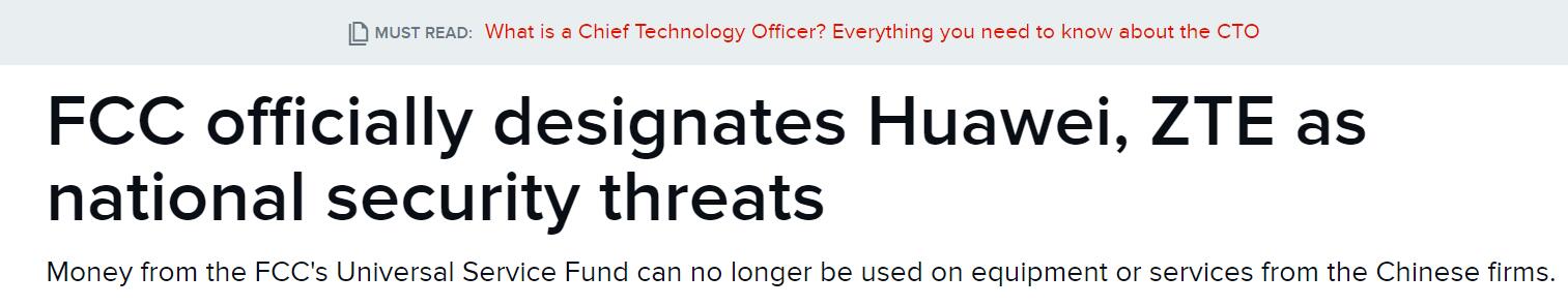 當(dāng)時,華為和中興通訊被“最初指定為”安全威脅,但是在接下來的幾個月中已經(jīng)正式確定了他們的身份,從而形成了今天的聲明。