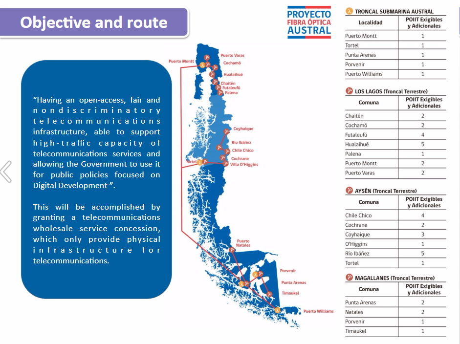 ICCSZ訊 據(jù)報(bào)道,包括西班牙電信智利分公司在內(nèi)的四家公司正在競(jìng)標(biāo)智利南部光纜項(xiàng)目Southern Optical Fiber,具體包括西班牙電信、CTR電信公司、Vupoint系統(tǒng)公司以及Austral公司。