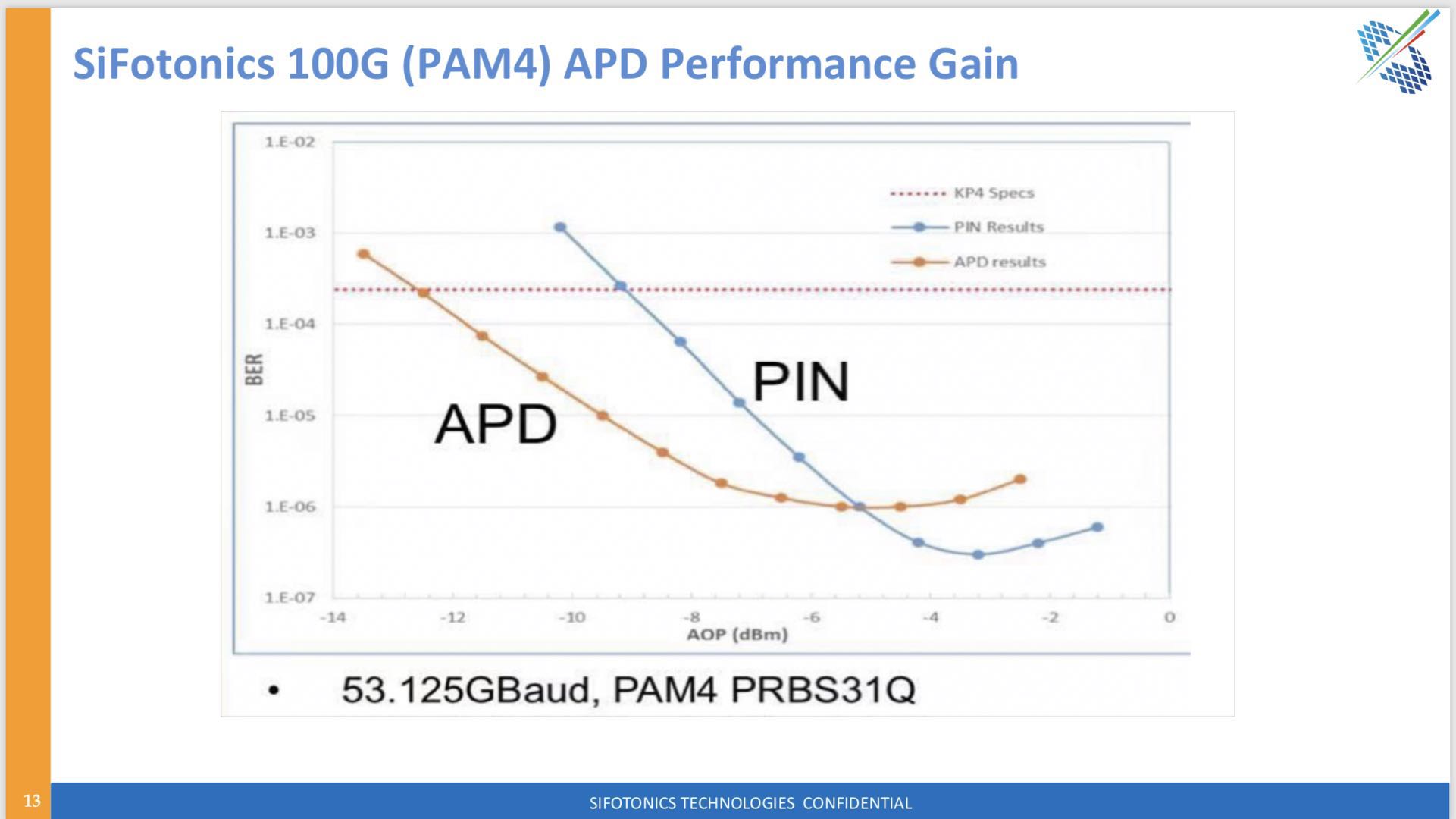 ”三流公司做產(chǎn)品,二流公司做市場,一流公司做標準”。SiFotonics 積極參與業(yè)內(nèi)領(lǐng)先的標準化工作,比如100G Lambda MSA 正在熱烈討論的沿用4x100G支持400G 10公里應(yīng)用。諸多提議中有分別建議增加發(fā)射功率,或分一半一半分別增加發(fā)射功率及接收靈敏度以解決鏈路預(yù)算,最后以維持發(fā)射功率,增加接收靈敏度方案勝出做為指標書基線下一步討論定案,并準備向IEEE標準提案定標。這項新標準為先進雪崩二極管開辟了新用途。“