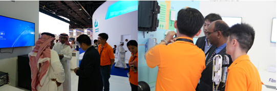 中東市場是全球發(fā)展最快的信息技術(shù)新興市場,其中,迪拜正在著力打造的“智慧城市”為網(wǎng)絡(luò)基礎(chǔ)設(shè)施、云計算、智慧應(yīng)用帶來新一輪發(fā)展機(jī)遇。今年,烽火科技進(jìn)一步強(qiáng)化目標(biāo)市場聚焦和產(chǎn)品匹配聚焦,將與寬帶接入有關(guān)的解決方案進(jìn)行大方案整合,以FTTxTurnkey的方式端到端展示了在超寬帶網(wǎng)絡(luò)、超高清終端方面的解決方案、服務(wù)能力和客戶案例。同時,在展臺設(shè)置了SDN和4K超高清業(yè)務(wù)的聯(lián)網(wǎng)演示,吸引著眾多觀眾駐足觀看和洽談。